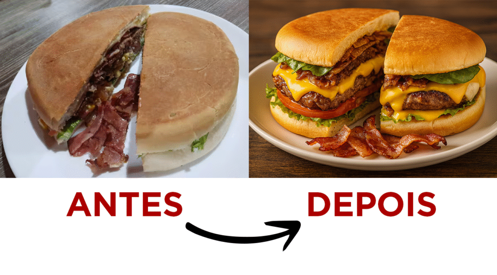 Envie uma foto do seu cardápio e receba a primeira imagem editada totalmente grátis.